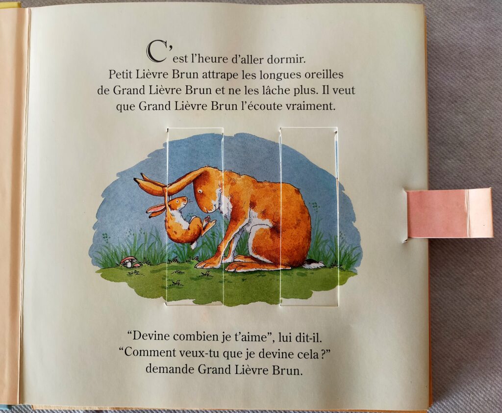 Devine combien je t’aime (Bratney / Jeram) • Dominique Hullin Auteur : Sam BratneyIllustrations : Anita JeramIngénieur papier : Éditions : L’école des loisirsAnnée : 2000 Touchant !